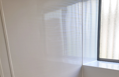 塩ビパネル壁やタイル壁など 、表面に凹凸のある壁や天井に化粧パネルを貼る工事です。タイル壁のひび割れ や冬場の冷感が暖和されます。 高級感がアップするとともに抗菌・防カビ加工パネルです 。