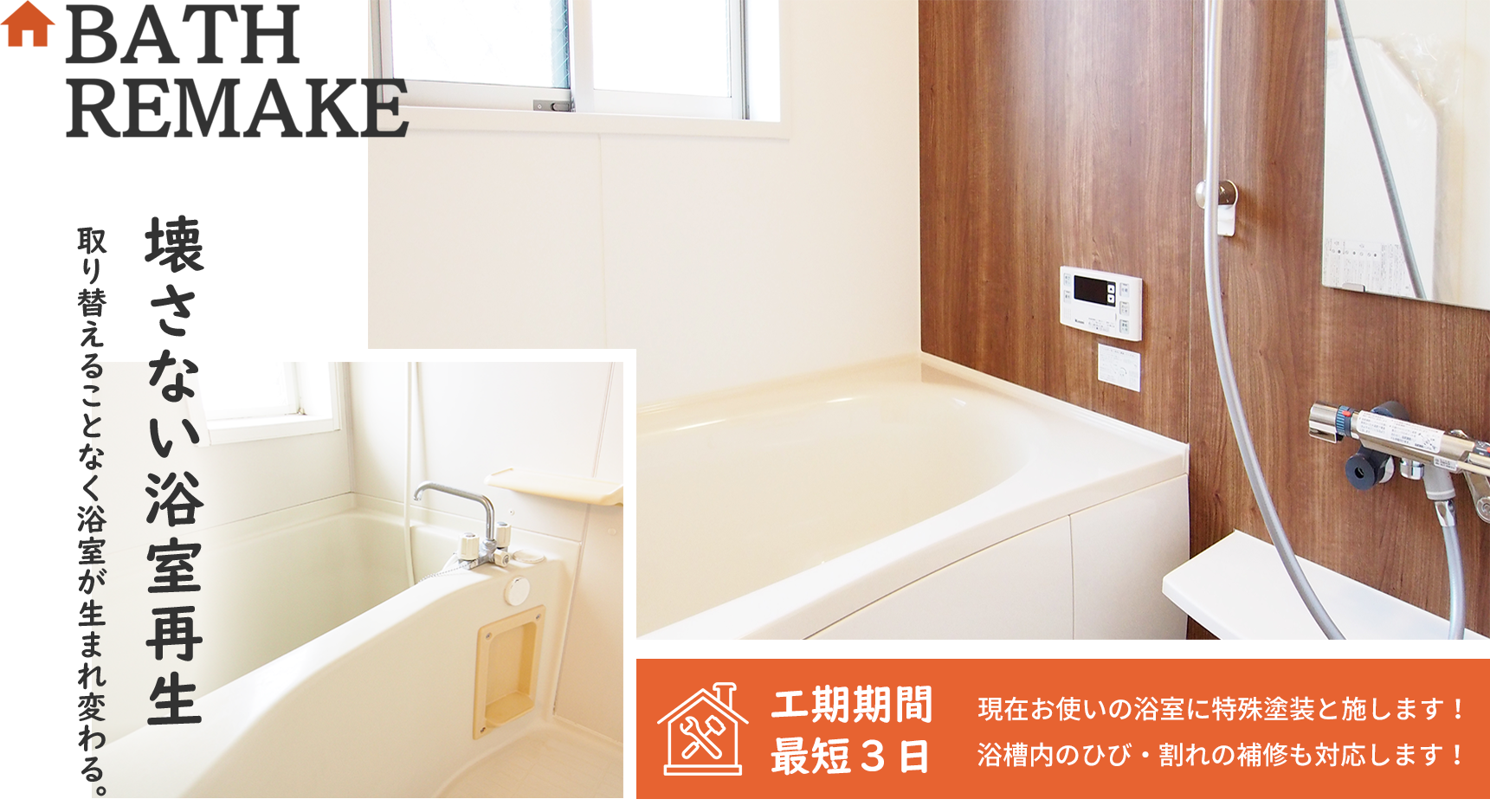 浴室のリニューアルを低コストでご提案します。
